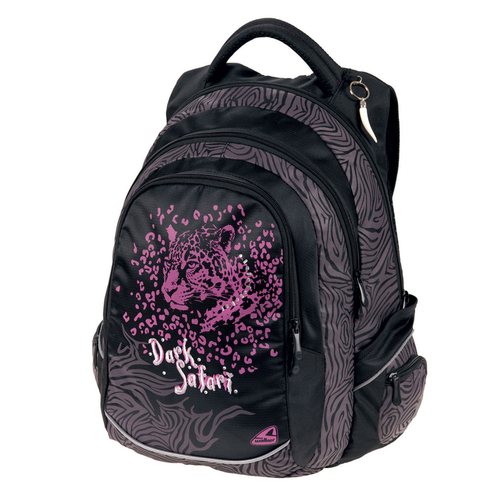 Walker Zipprucksack "Dark Safari" mit 3 praktischen Zippfächern. Bestehend aus einem Hauptfach mit flexiblem Innenteiler, Zipptasche und A4-Steckfach, einem mittleren Fach und einem Vorfach mit Organizer (Zippnetztasche, Steckfach und Steckplätzen für Stifte). Darüber hinaus hat der "Wonderland" noch ein Steckfach an der Vorderseite. Die ergonomisch geformten Schulterriemen und die atmungsaktive Rückenpolsterung sorgen für hohen Tragekomfort. Der "Dark Safari" ist aus wasserabweisendem Material gefertigt, verfügt über einen verstellbaren Brustgurt, Seitentaschen und retroreflektierende Elemente für mehr Sicherheit bei Dunkelheit.
