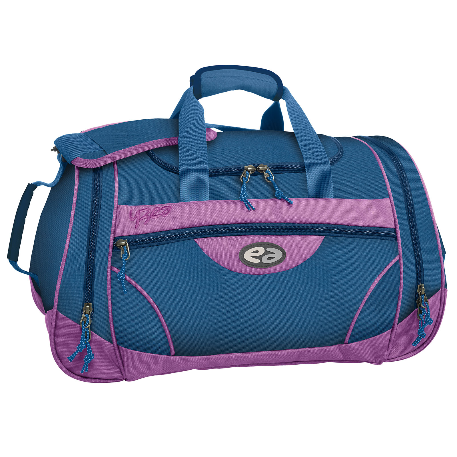 Die YZEA Sporttasche Sports ist ein idealer Begleiter für Freizeit, Sport und Fitness. Die Sporttasche hat an der Vorderseite eine lange Außentasche für Kleinkram das schnell griffbereit sein soll. An den beiden schmalen Seiten je ein Reißverschlussfach mit Ablauföffnungen, die ideal für Trinkflaschen oder nasse Handtücher oder Badesachen sind. Das geräumige Hauptfach lässt sich mit dem stabilen Rundbogenreißverschluss leicht bedienen. Mit dem längenverstellbaren und abnehmbaren Schultergurt lässt sich die Sporttasche praktisch umhängen. Selbstverständlich kann man die Sporttasche auch ganz leicht an den oberen Tragegriffen, als auch an den beiden an den Seitentaschen angebrachten und gepolsterten Tragegriffen transportieren. Die Stellfüße am Boden schützen die Sporttasche vor Schmutz und Nässe.
